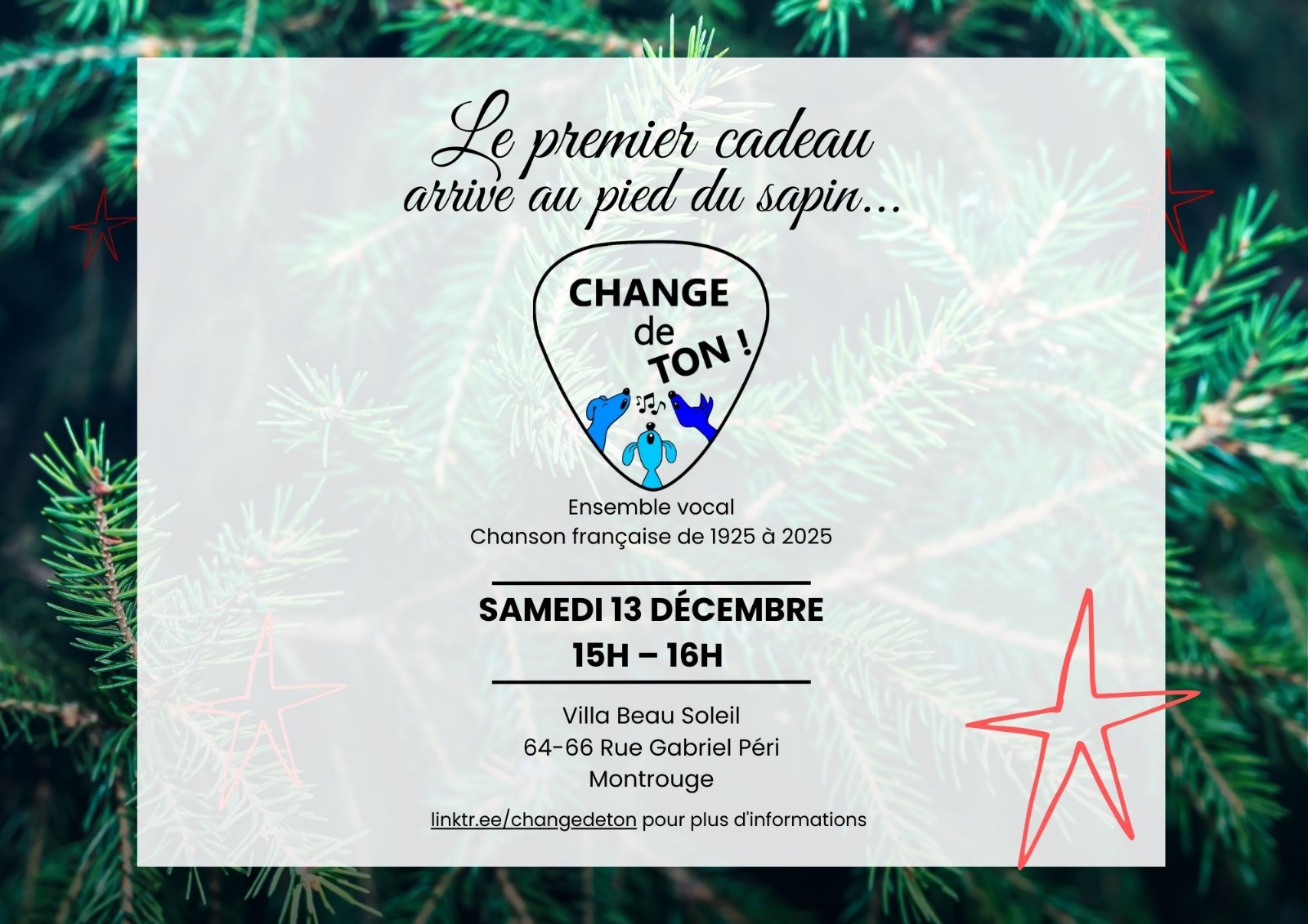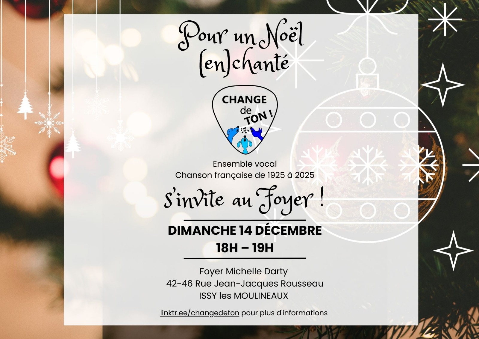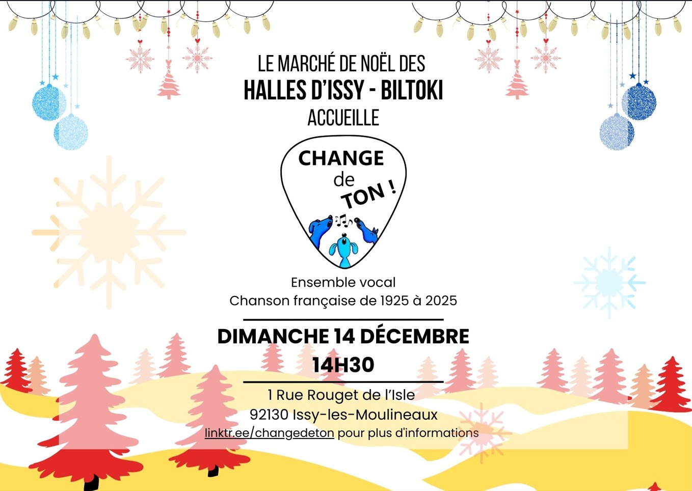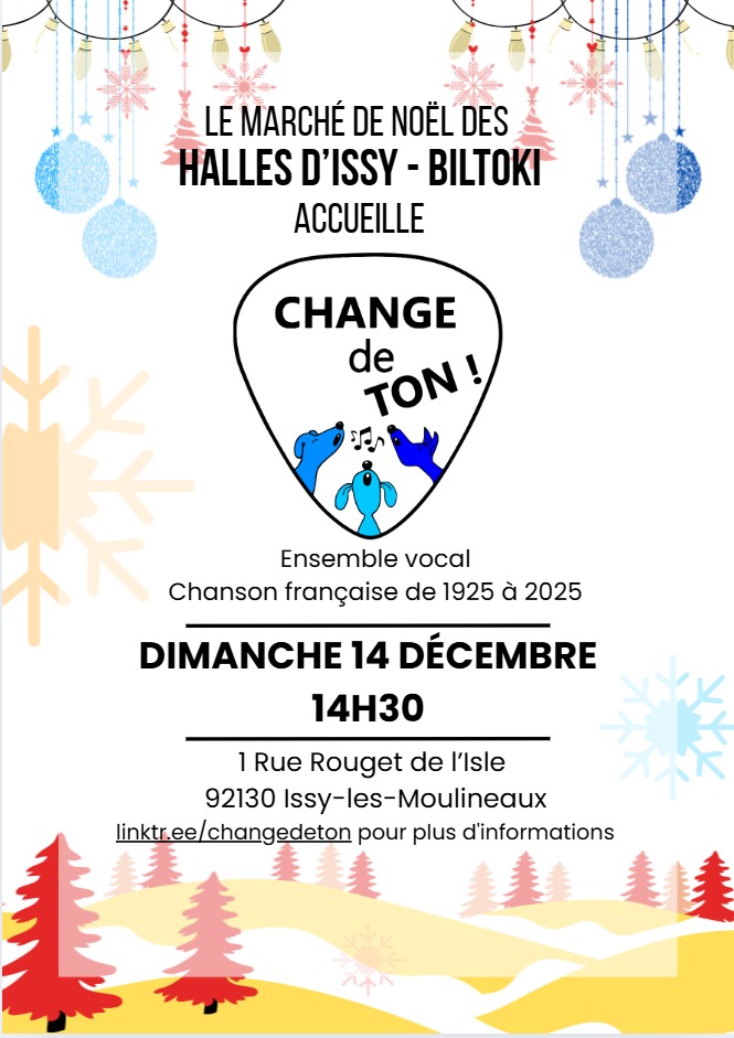 SAVE THE DATE : Venez nous écouter le dimanche 14 dec. au marché de Noël d’Issy les Moulineaux.
